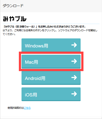 ※商品名「みやブル for マルチデバイス 月額版」の「ダウンロード」ボタンをタップし、[Mac用]を選択してください。