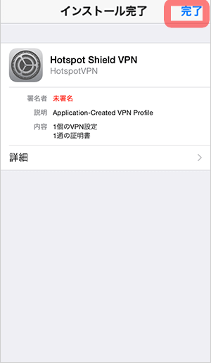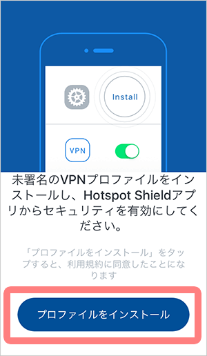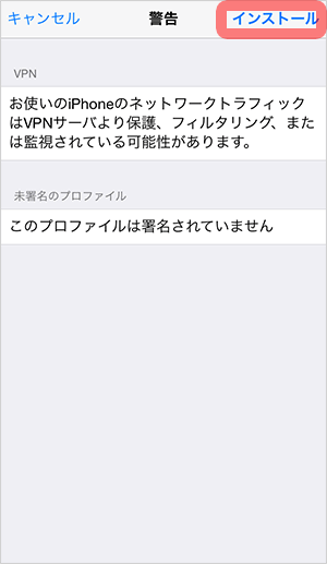 ※プロファイルのインストールは、 iOSが VPN サービスの使用に対して必要としているものです。