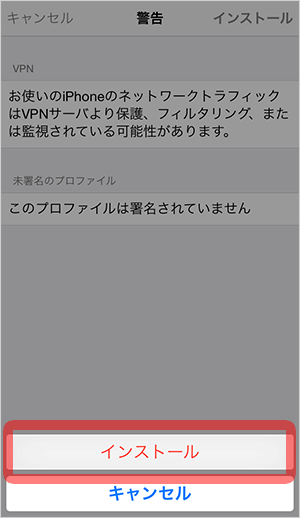 VPNプロファイルのインストールが必要になります。