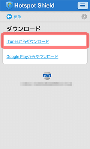 商品名Hotspot Shield Eliteの「ダウンロード」ボタンをタップするか、http://www.hsselite.com/sign-up へアクセスしてください。