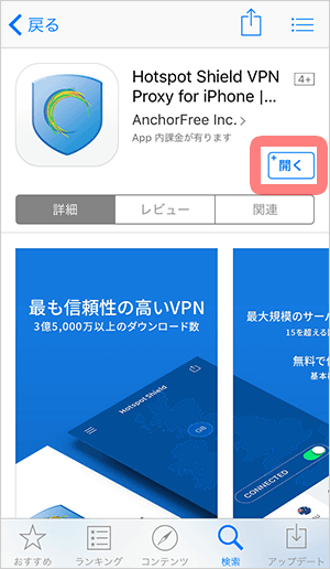 [開く]をタップして、アプリを起動させます。