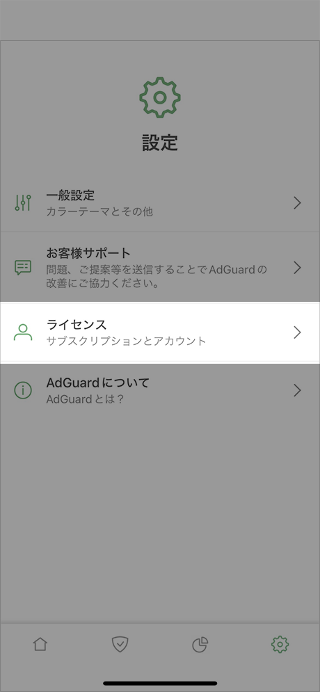 「ライセンス」をタップしてください。