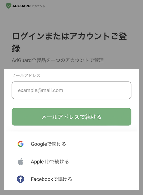 AdGuardアカウントへログインしてください。