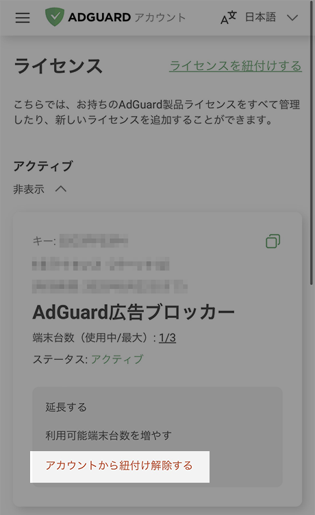 ライセンス確認方法・紐づけの解除方法
