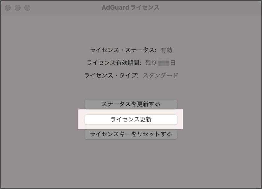 こちらの画面赤枠内に表示されているものが「ライセンスキー」となります。