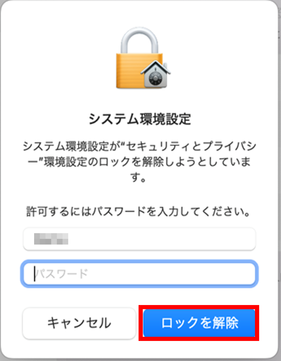 パスワードを入力し、[ロック解除]をクリックします。