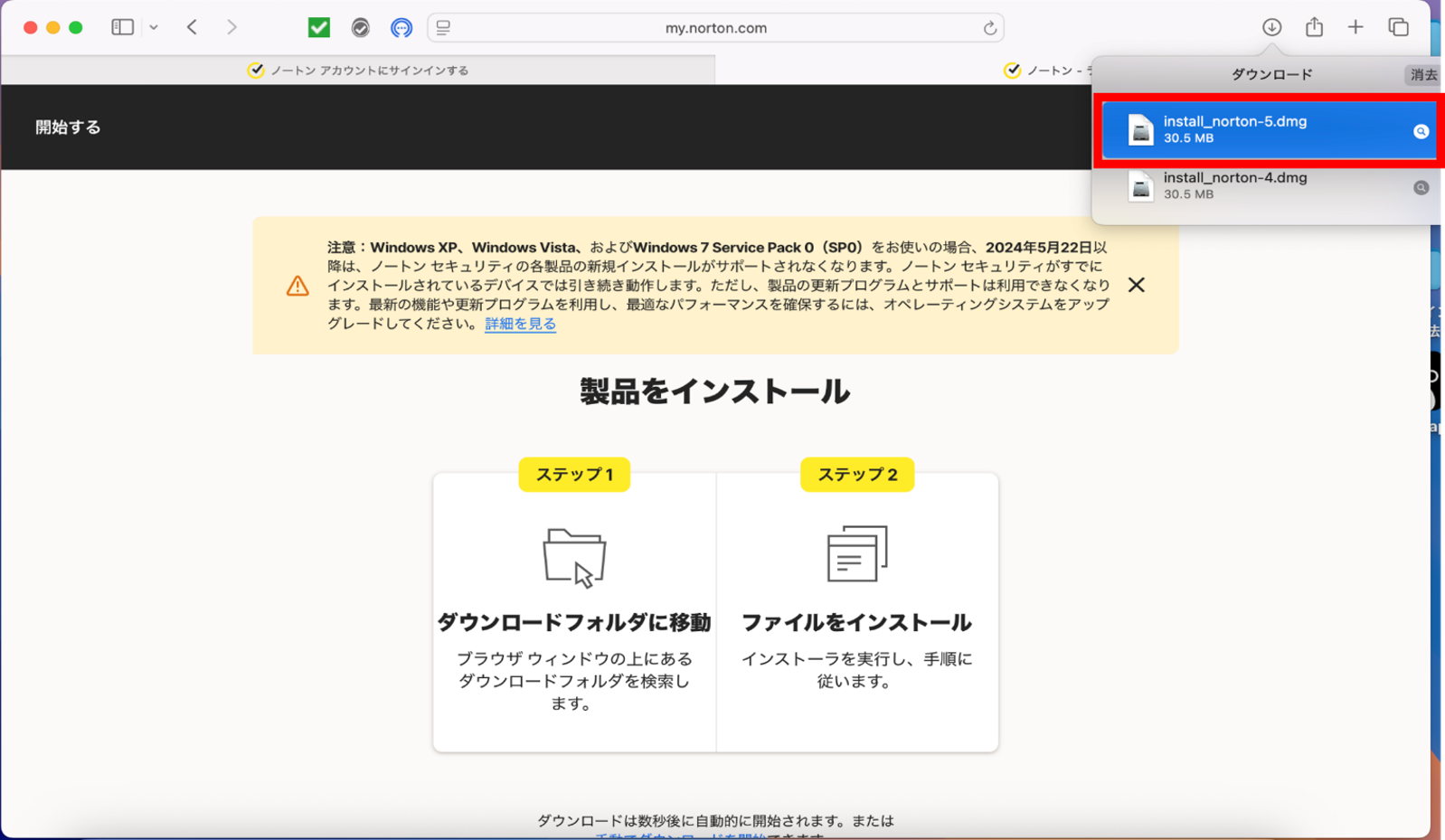 ※インストール中のプログラム名などに「ノートン 360」と表示されることがありますが、お使いの製品は「ノートン™ セキュリティ」のMac版となります。
