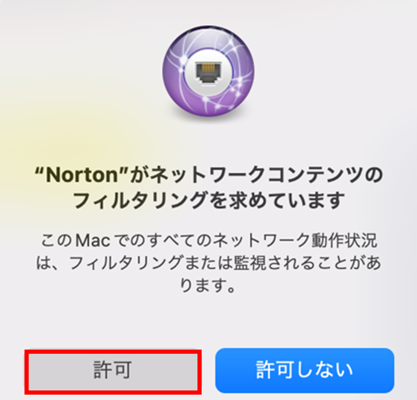[許可]をクリックします。