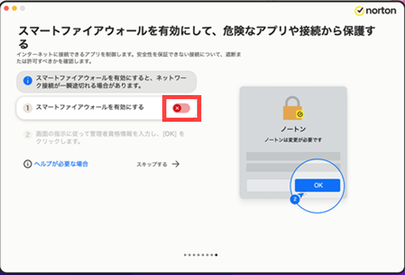 [スマートファイアウォールを有効にする]を右へスライドします。