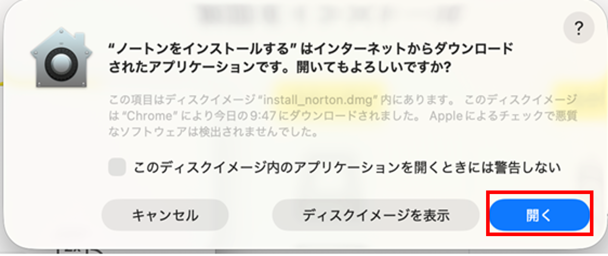 [開く]をクリックします。