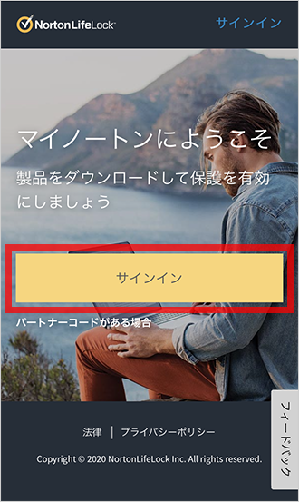 製品ご利用開始時にご登録いただきましたマイノートンアカウントにてサインインしてください。