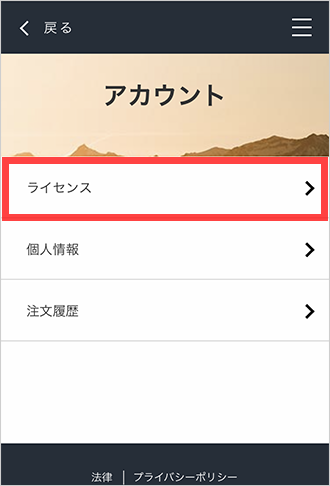 画面右上の三本線のアイコンをタップし、メニューを開きます。
