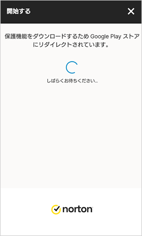 誤って[開始する]をタップした場合、次の画面が表示されます。Android端末の[戻る]ボタンをタップして、前の画面に戻ってください。
