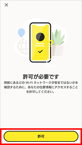 位置情報へのアクセス許可を求められますので[許可]→[アプリの使用中のみ許可]をタップしてください。