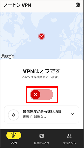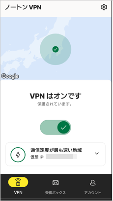 次の画面が表示されましたら、インストール完了です。画面真ん中のトグルスイッチをタップし、VPNをオンにしてください。