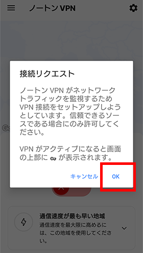 接続リクエストのダイアログが表示されましたら、[OK]をタップしてください。