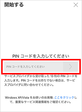 お申込み完了画面に表示されているPINコードを入力してください。