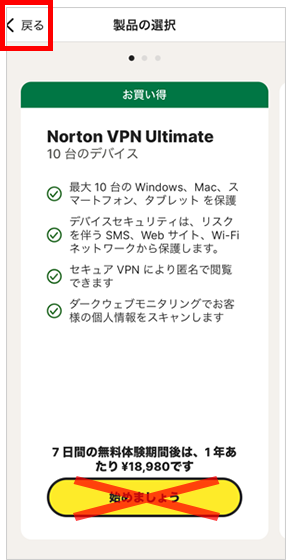 ※[始めましょう]はタップしないようにご注意ください。