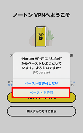 次のような画面が表示がされた場合は、[ペーストを許可]をタップしてください。