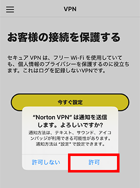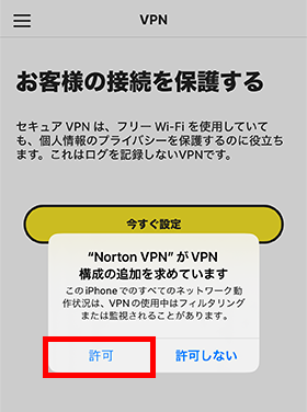 VPN設定の許可を求めるメッセージが表示されます。[許可]をタップします。