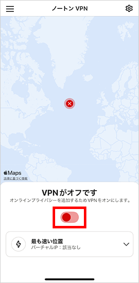 次の画面が表示されましたら、インストール完了です。画面真ん中のトグルスイッチをタップし、VPNをオンにしてください。