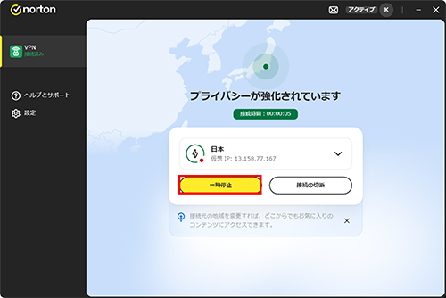[接続]をクリックし、VPNをご利用ください。